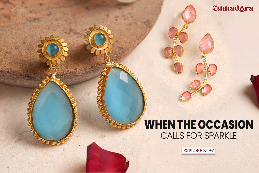 Ashvi- Stone Studded Dangler Earrings(Green)