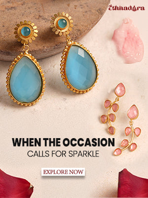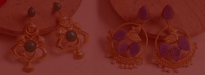 Aarohi- Golden Framed Hanging Pearl Jhumka Earring.