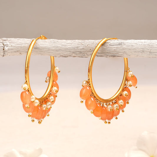 Zoya- Hanging Pearl Hoops Earrings(Orange)
