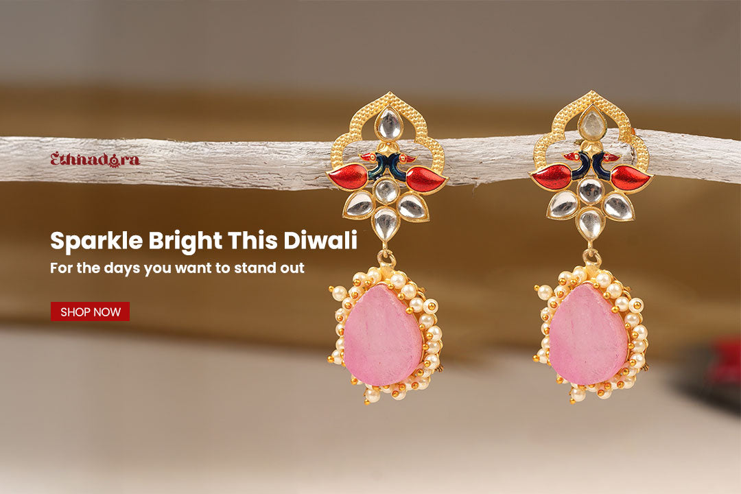 Aarohi- Golden Framed Hanging Pearl Jhumka Earring.