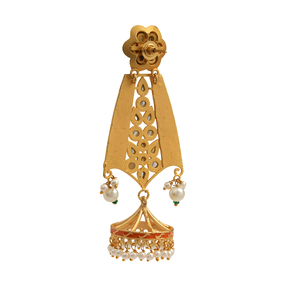 Nirvi stone-studded danglers combine timeless elegance with contemporary flair. Each earring features carefully selected stones set in a studded design that catches light beautifully, while the dangler silhouette adds graceful movement. The soft light orange hue offers versatility—perfect for warm skin tones and complementing both casual and festive wear. Lightweight construction ensures all-day comfort, making these earrings an essential addition to your jewelry collection.