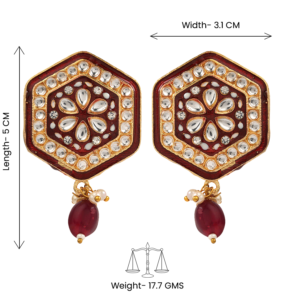 Raelle- Stone studded hanging Bead stud earrings(Red)