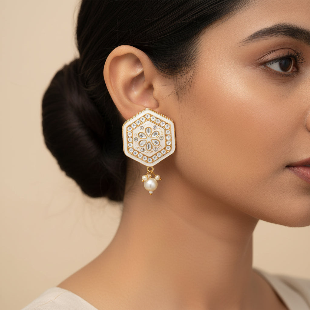 Raelle- Stone studded hanging Bead stud earrings(White)