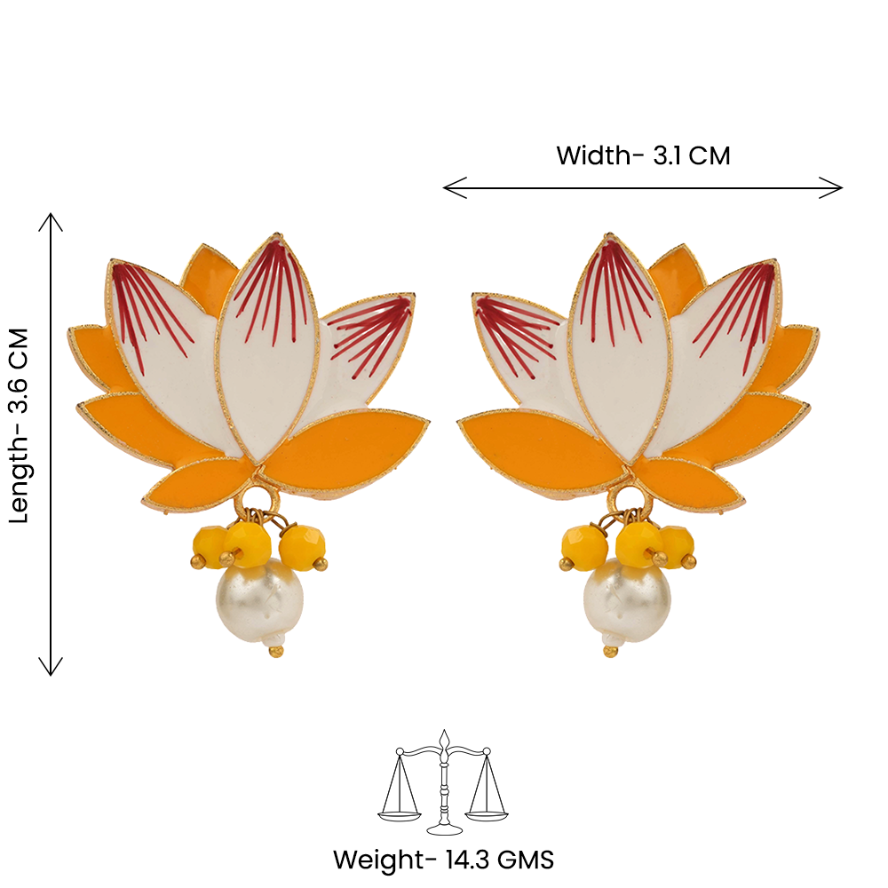 The Kiyona Hanging Pearl Stud Earrings feature elegant pearl drops that add subtle movement and charm to your look. Designed with a suspended structure, these earrings catch the light beautifully and pair effortlessly with festive and everyday outfits. The yellow detailing adds a bright, refreshing touch, making them a versatile accessory for both traditional and contemporary styles. Crafted for comfort and durability, they bring together delicate aesthetics with practical wearability.