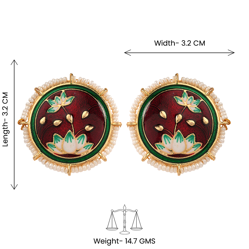 The Liorna Pearl-Framed Stud Earrings feature a lustrous central pearl set within an elegant metal frame, offering a refined and versatile look. The colored accent adds a vibrant touch, making these earrings suitable for festive wear as well as everyday elegance. Lightweight and comfortable, they bring together classic styling with modern charm, making them a staple accessory for any jewellery collection.