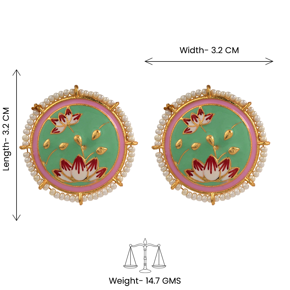 The Liorna Pearl-Framed Stud Earrings feature a lustrous central pearl set within an elegant metal frame, offering a refined and versatile look. The colored accent adds a vibrant touch, making these earrings suitable for festive wear as well as everyday elegance. Lightweight and comfortable, they bring together classic styling with modern charm, making them a staple accessory for any jewellery collection.