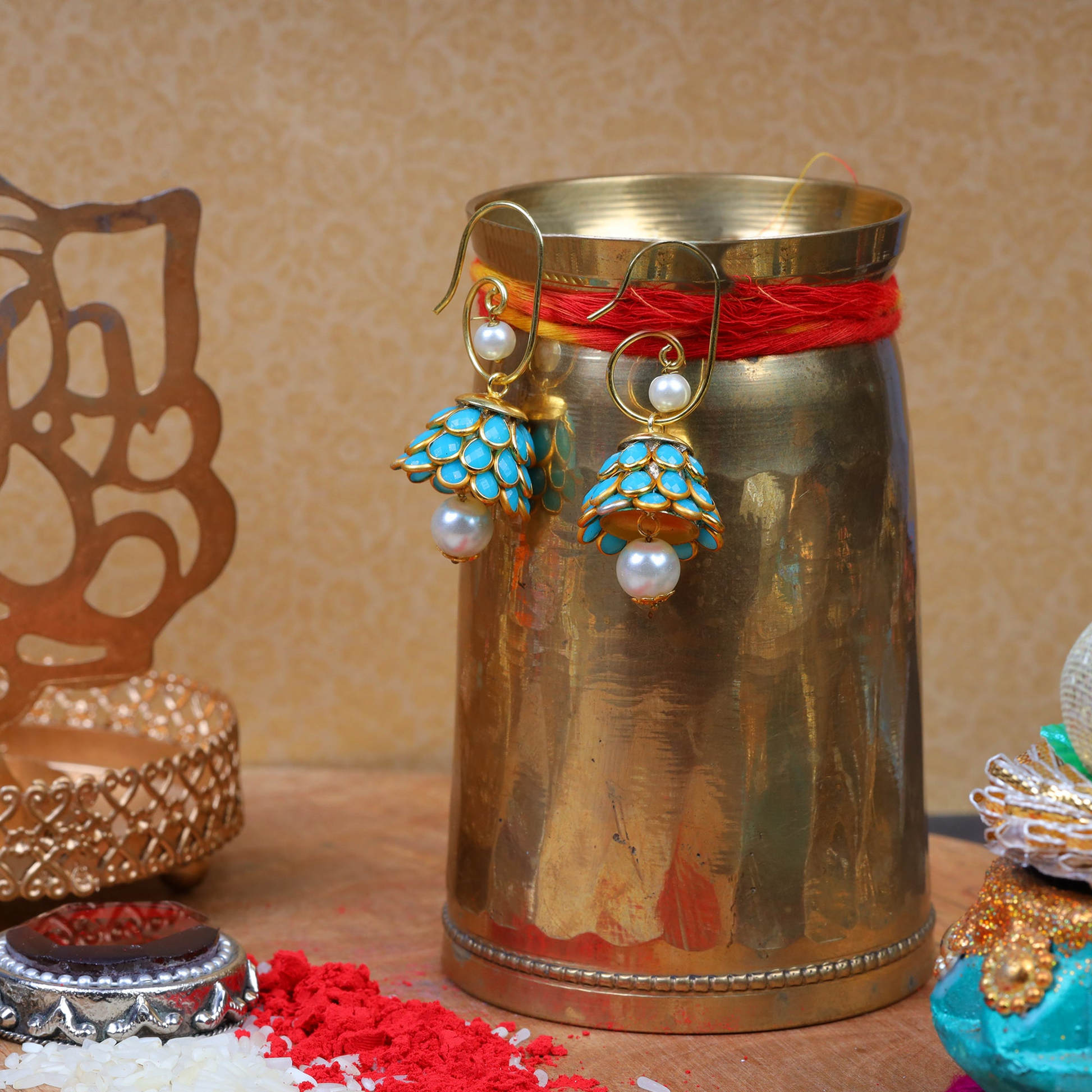 Ishani- Hanging Pearl Jhumki Earrings(Sky Blue)