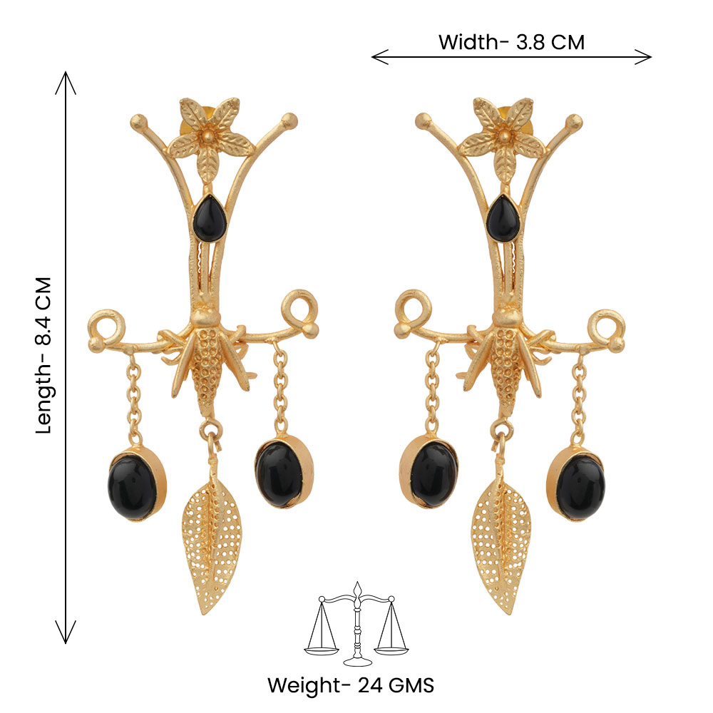 Arya- Stone Studded Dangler Earrings(Black)