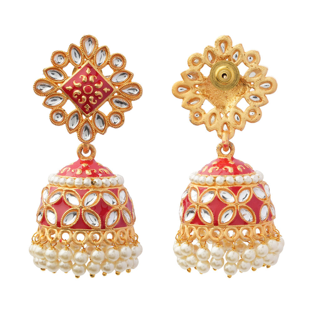 | Style Tip: Style with a pastel kurti or lehenga—pull your hair half-up to highlight the pink jhumki center. |