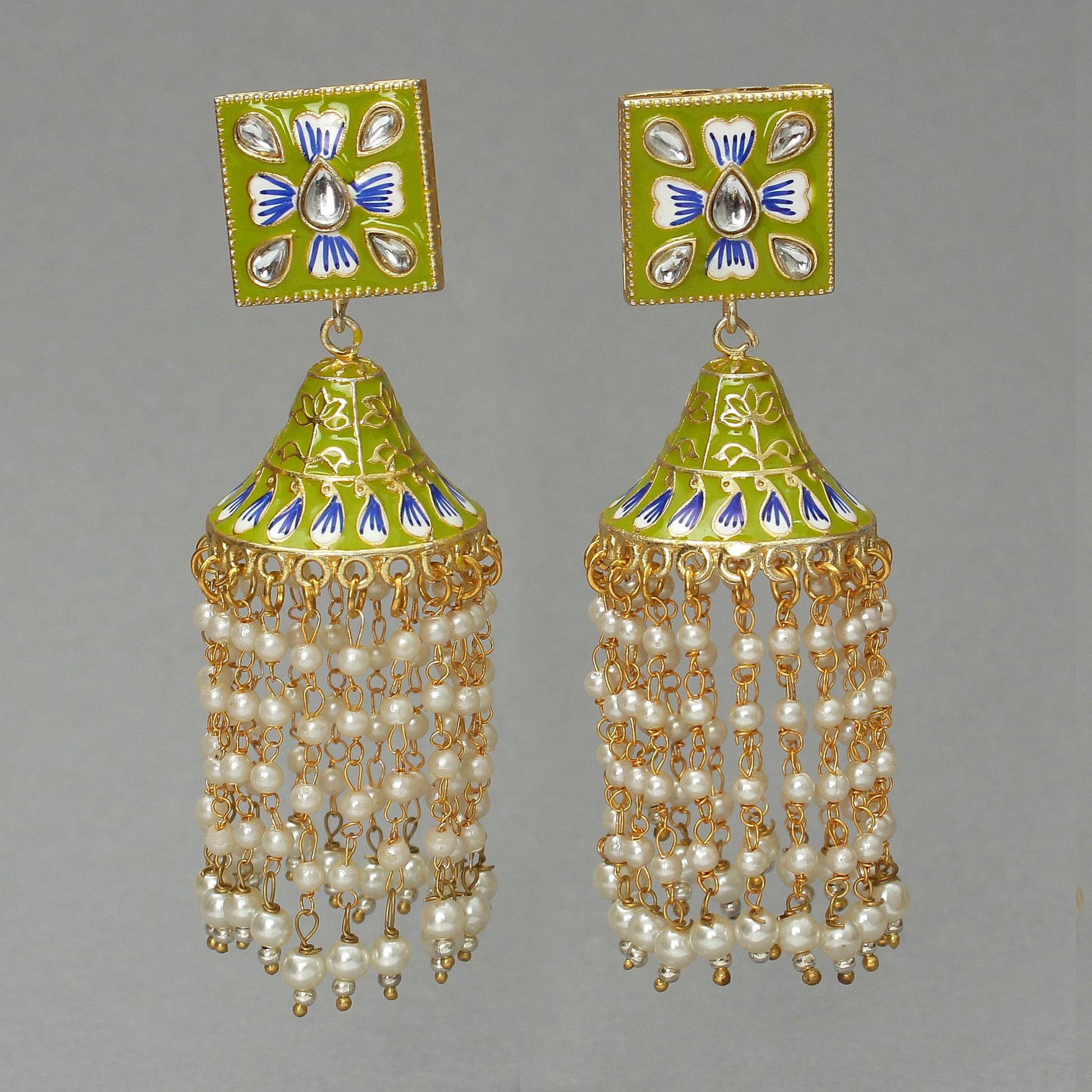 Elevate your elegance with the Mahika Stone Studded Hanging Pearl Dangler Earrings. Expertly crafted, these earrings combine shimmering stones with lustrous pearls to create a refined, timeless look. The delicate hanging design enhances your silhouette, making them perfect for both formal occasions and sophisticated everyday wear. Experience a blend of classic charm and modern artistry with every graceful movement.