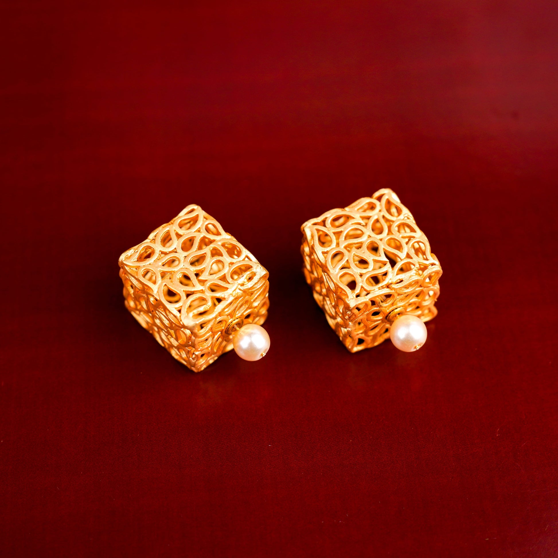 Mira- Hanging Pearl Boxy Stud Earrings.