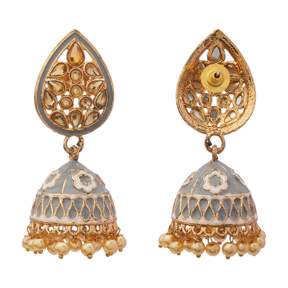 Dyuti- Stone Studded Hanging Pearl Jhumka Earrings (Gray)