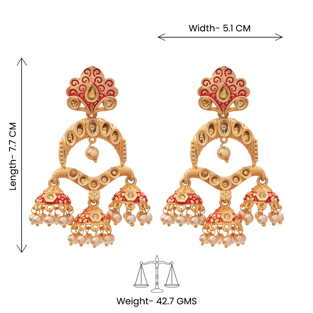 Hamsika- Stone Studded Hanging Pearl Dangler Earrings(Red)