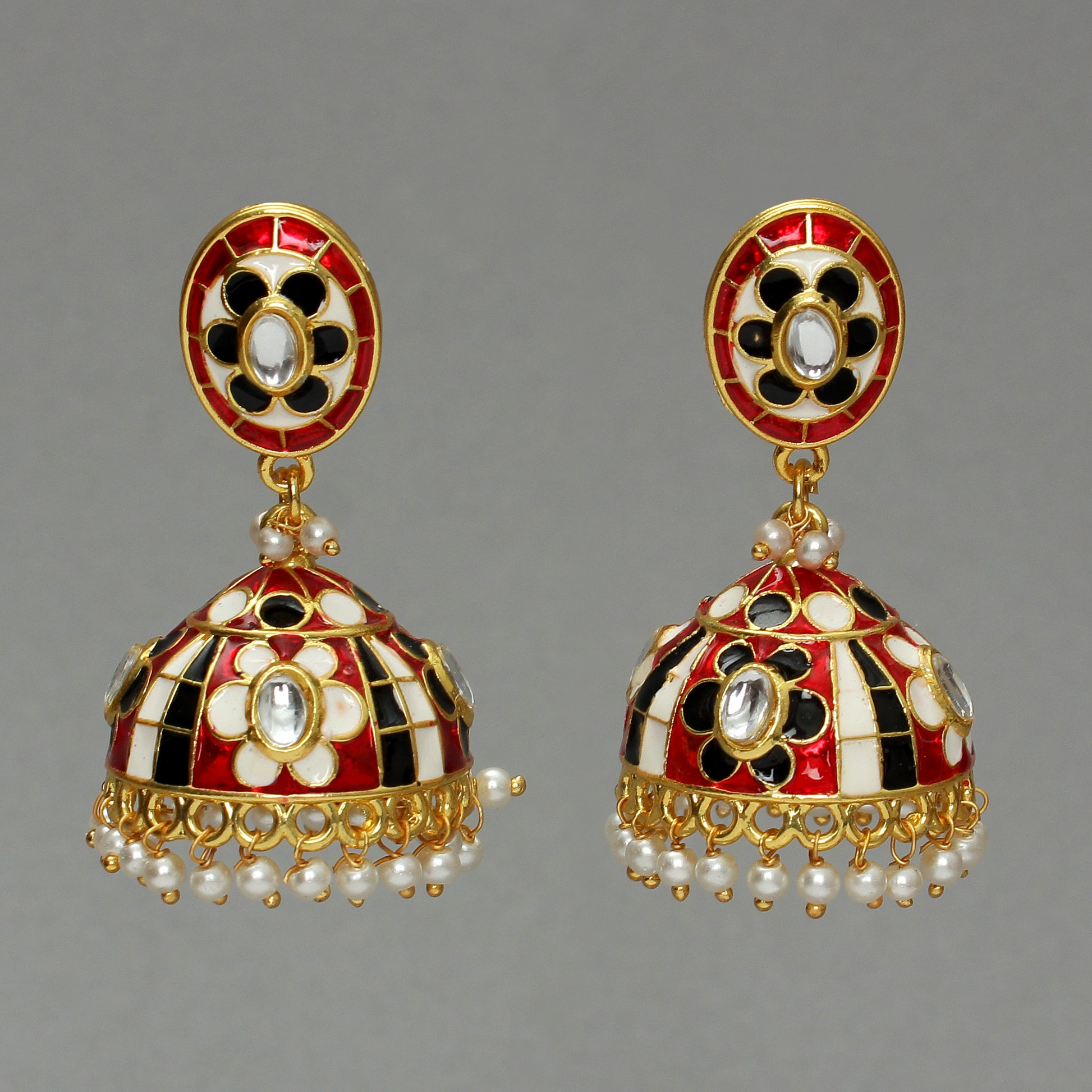 Elevate your traditional look with the Charvi Hanging Pearls Jhumka Earrings. Expertly crafted to showcase delicate pearls suspended from intricately designed jhumkas, these earrings offer a graceful blend of elegance and timeless charm. Lightweight and comfortable, they enhance any ethnic ensemble with subtle sophistication ideal for festive occasions or everyday wear.