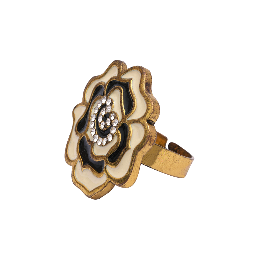Abhira-Golden Framed Adjustable Ring(Multicolor- White and Black)