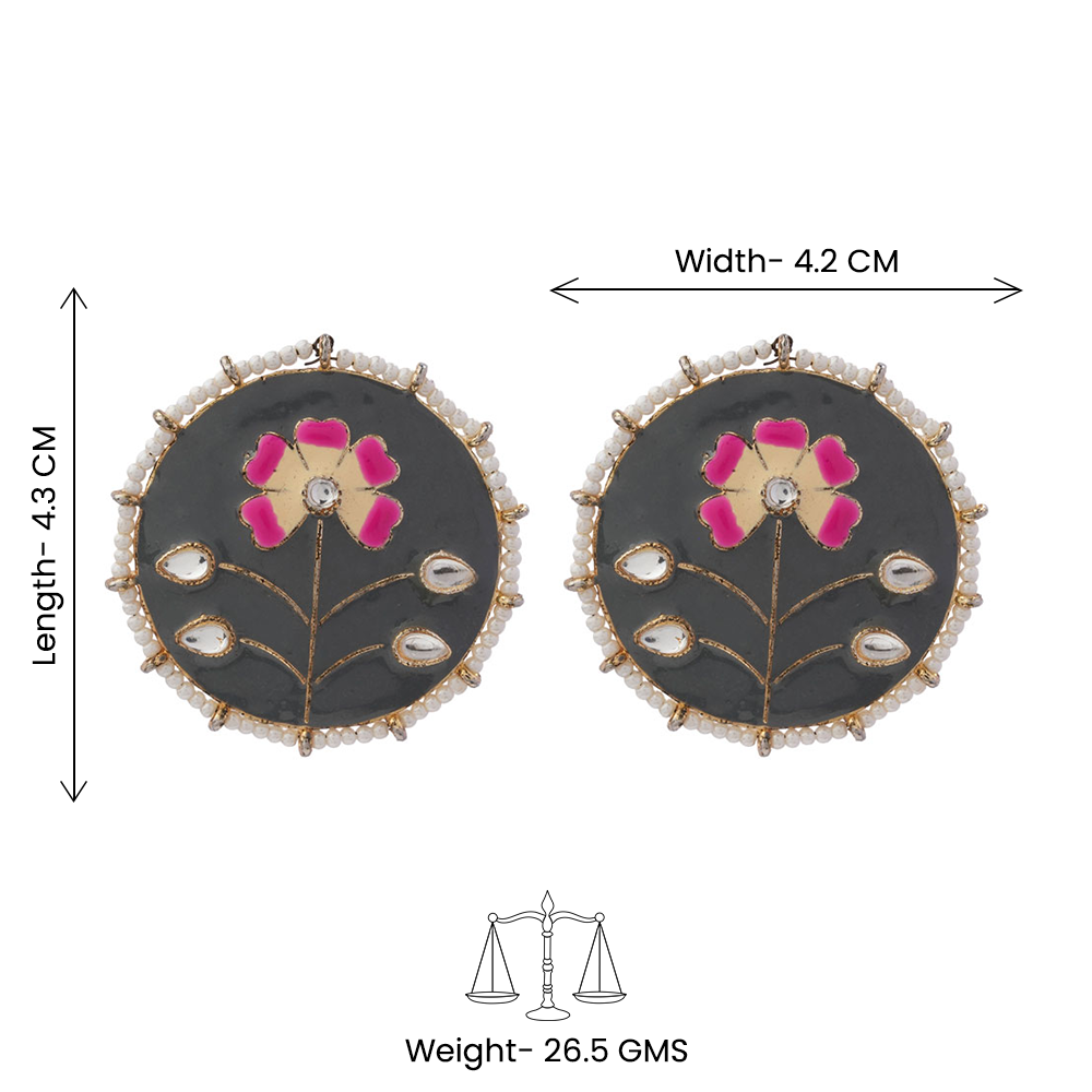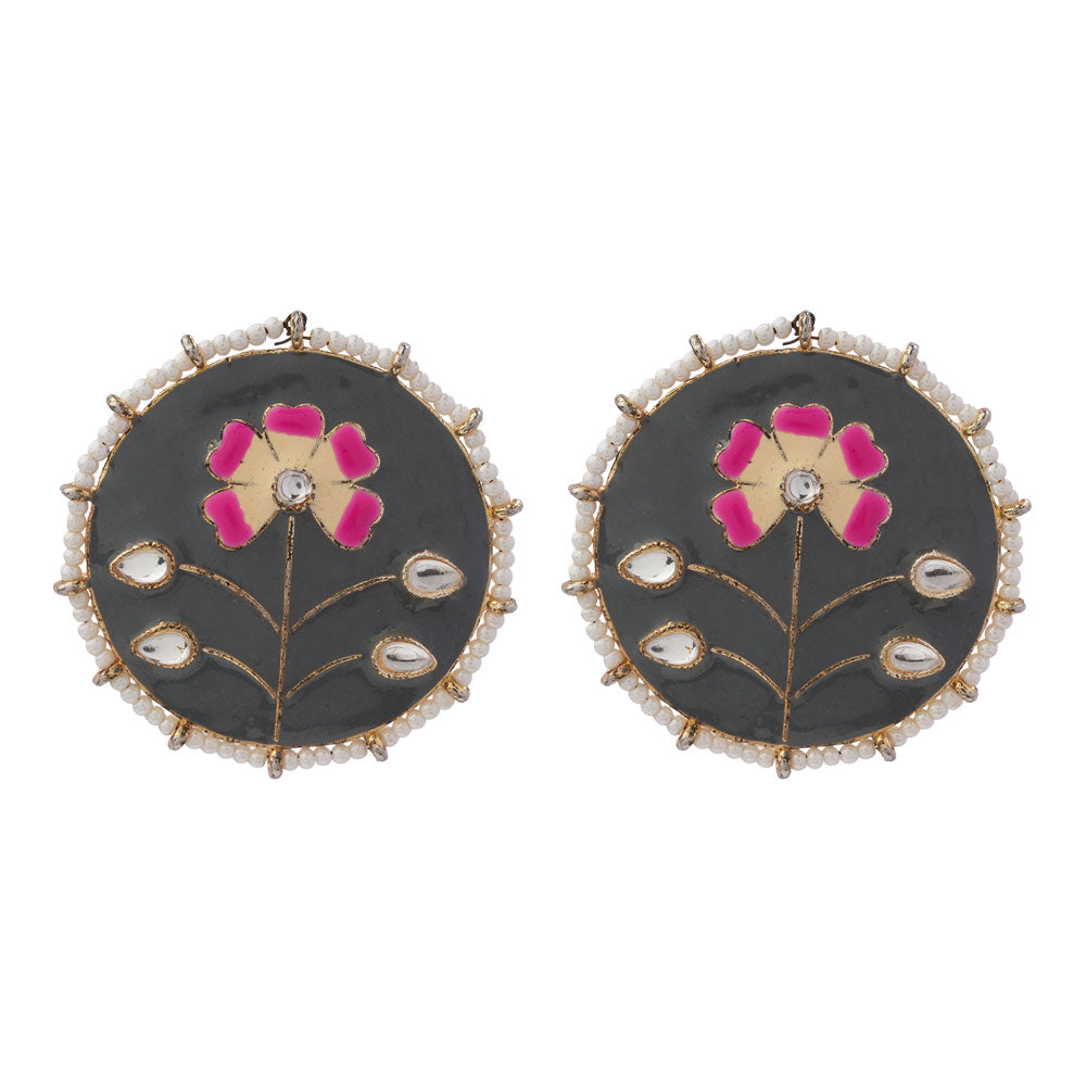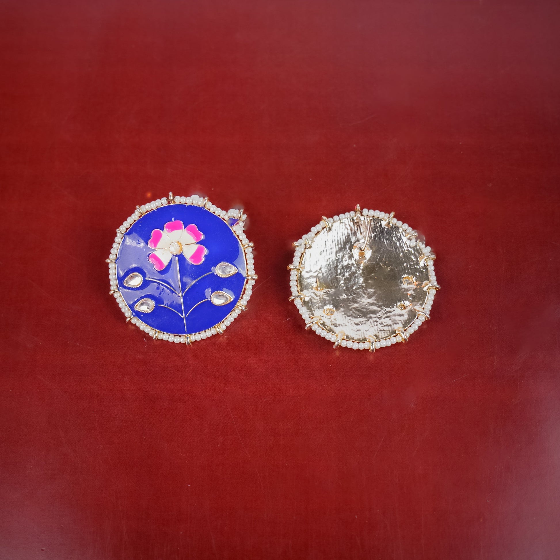 Anahita- Stone Studded Pearl Framed Stud Earrings(Blue)