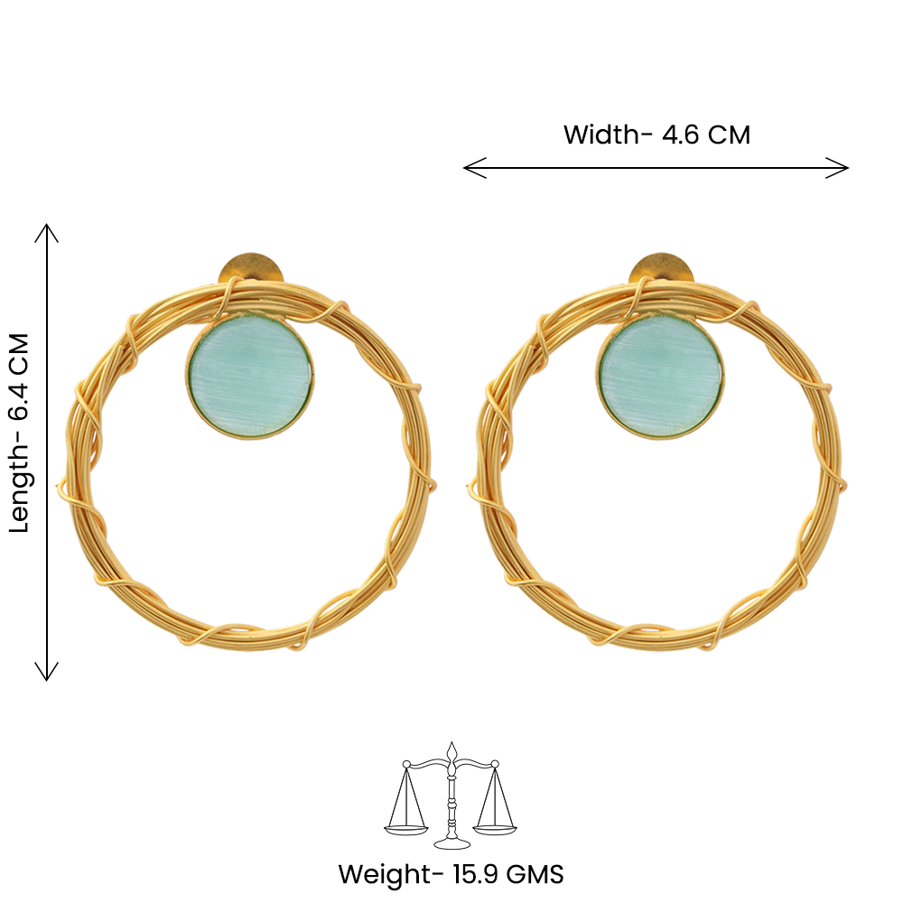 Deeptika- Stone Studded Golden Framed Dangler Earrings(Mint)