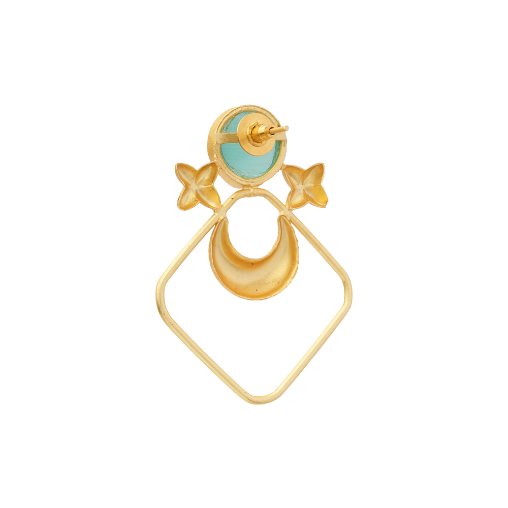 Urvashi- Stone Studded Golden Framed Dangler Earrings(Mint)