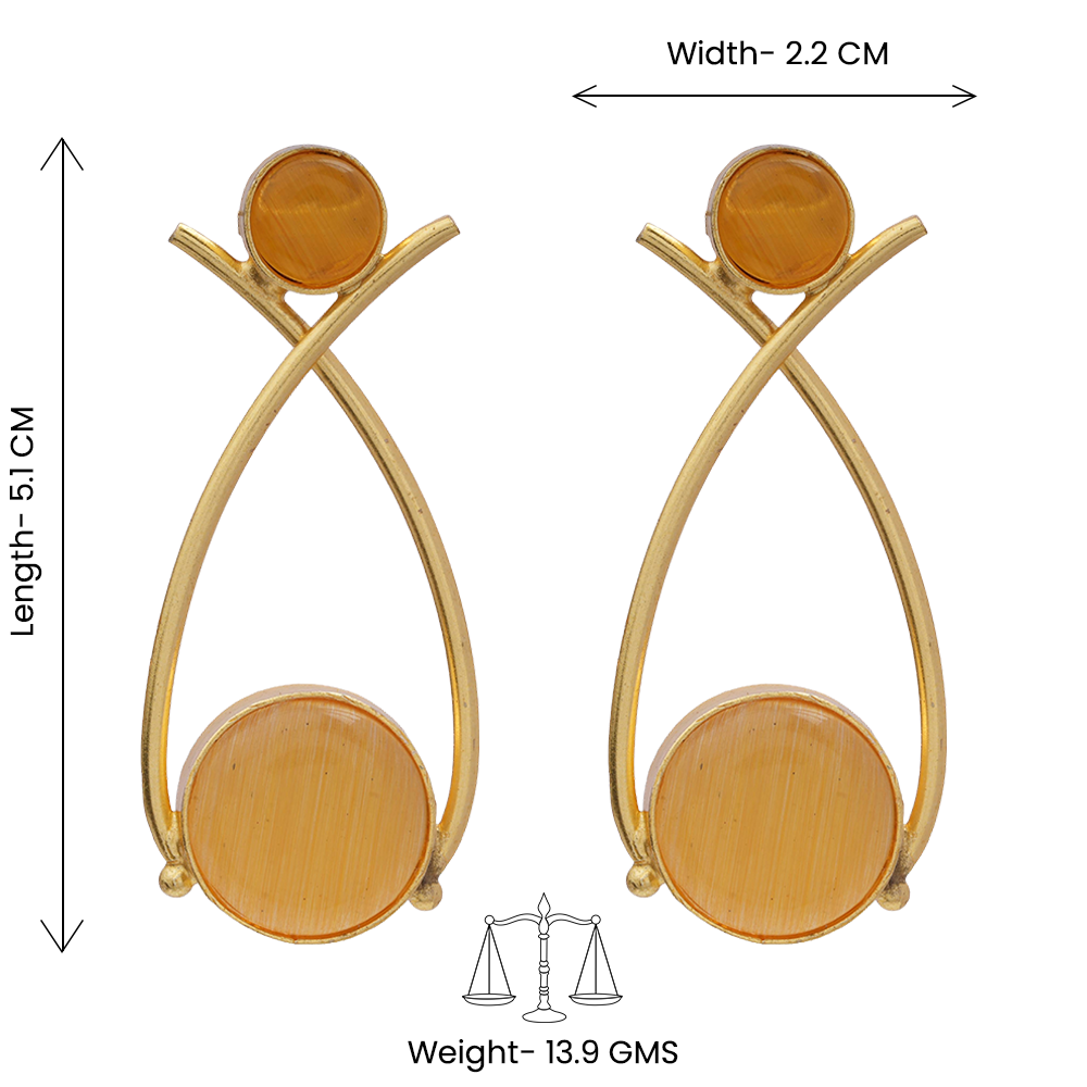 Anika- Stone Studded Golden Frames Dangler Earrings(Yellow)
