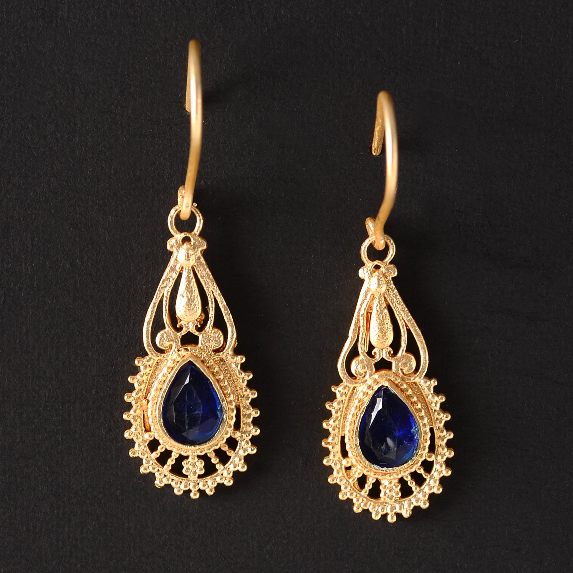 Ruhi- Stone Studded Dangler Earrings(Blue)