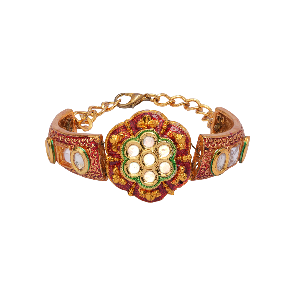 | Style Tip: Wear this bracelet on your dominant hand for maximum impact, and pair it with a minimal ring or slim bangles to let the Kundan detailing stand out. |