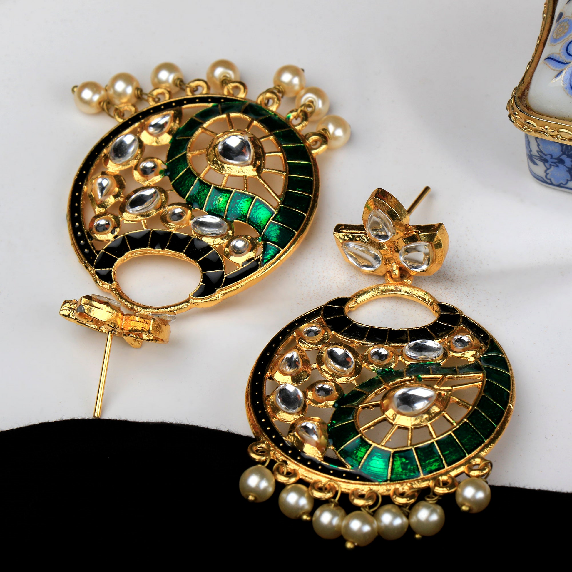 Lavanya- Stone Studded Hanging Pearl Dangler Earrings(Multicolored)