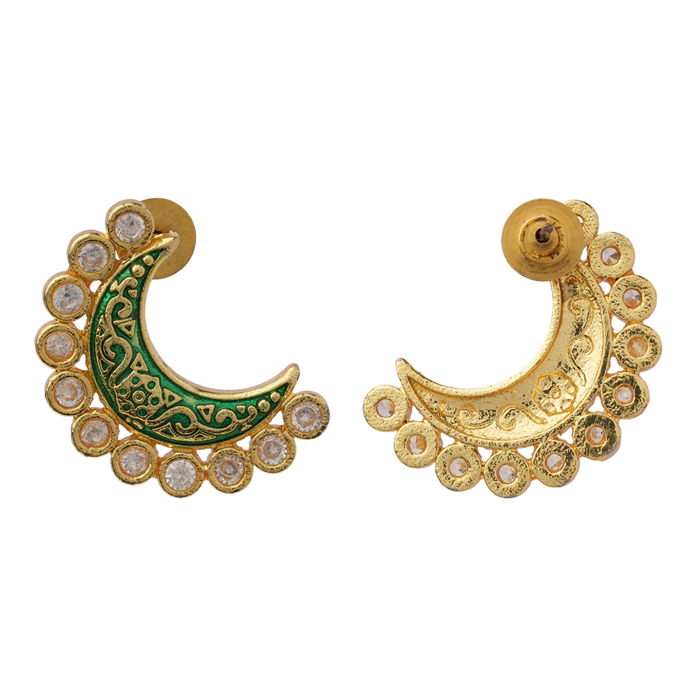 Add classic refinement to your look with the Kira Green Kundan Stud Earrings. Featuring traditional Kundan detailing set against a rich green base, these earrings bring subtle radiance and sophistication to any outfit. Lightweight and comfortable, they’re perfect for festive occasions, cultural celebrations, or everyday elegance.