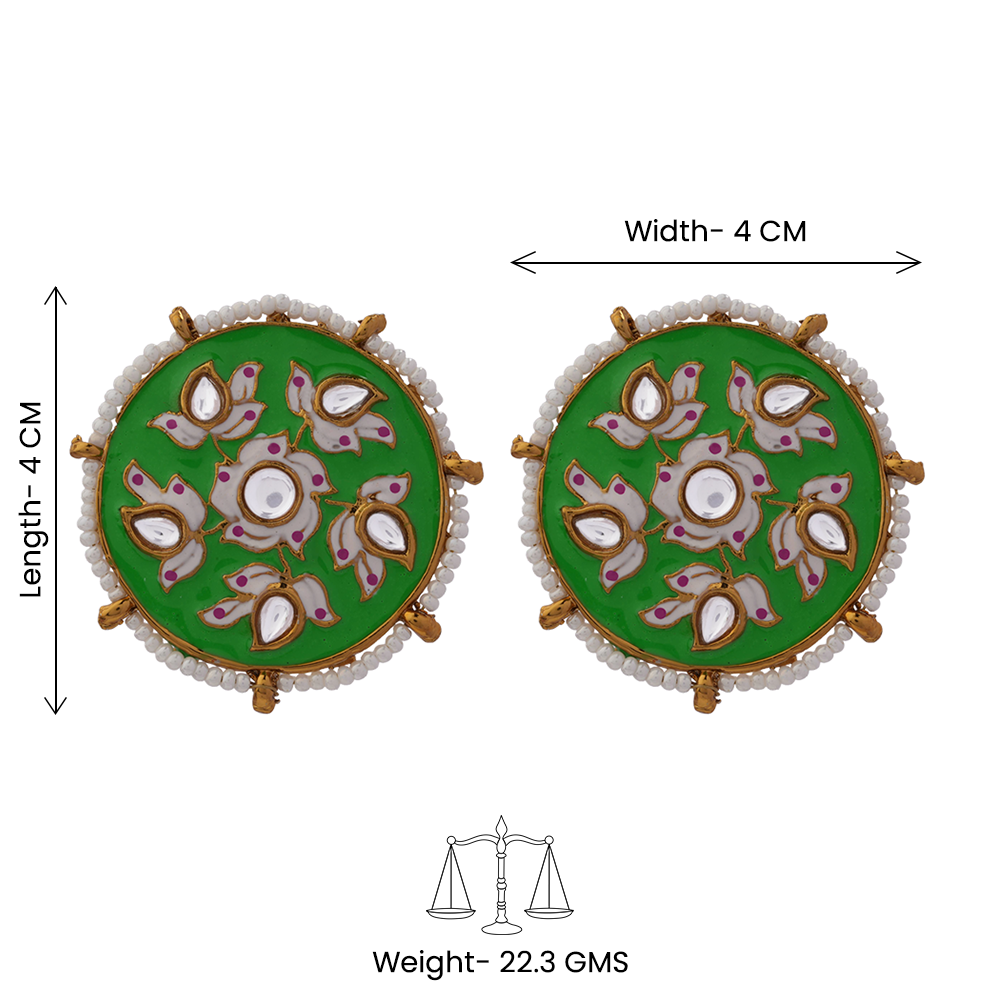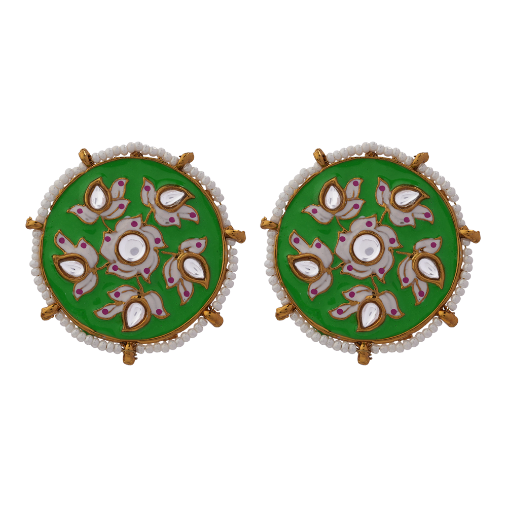 Kriti- Pearl Framed Stud Earrings(Parrot Green)