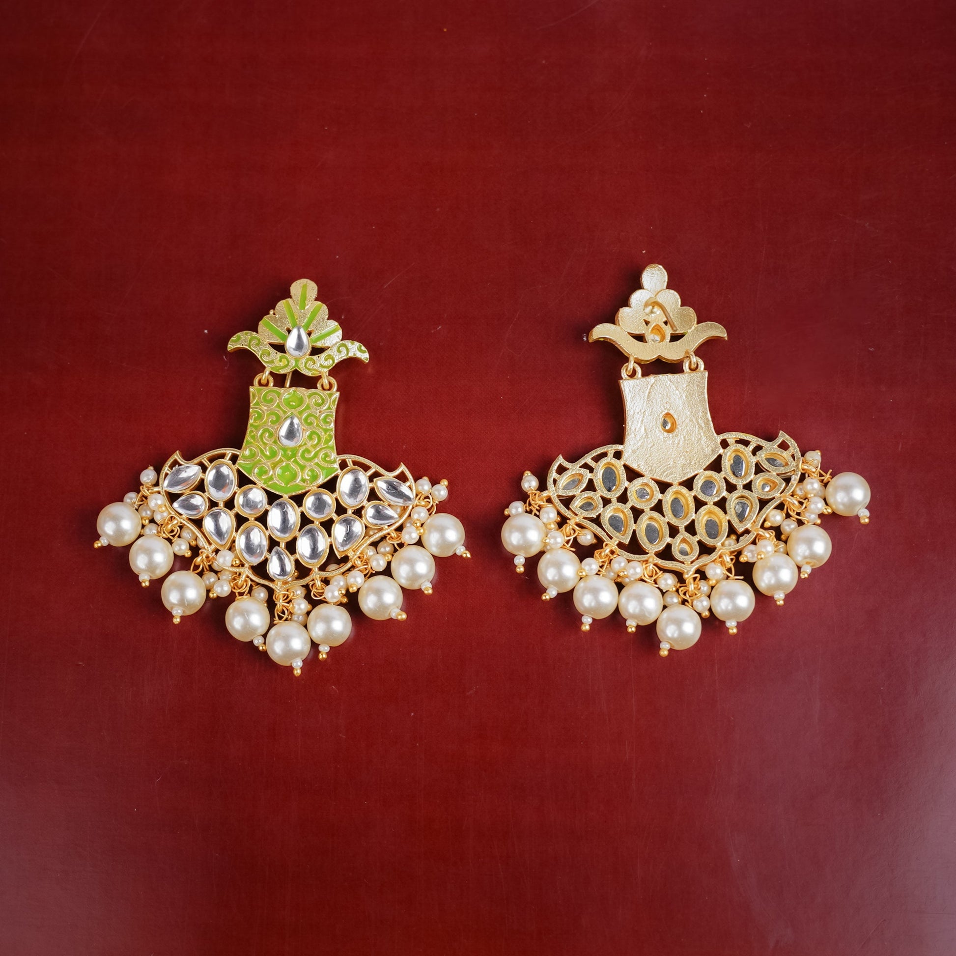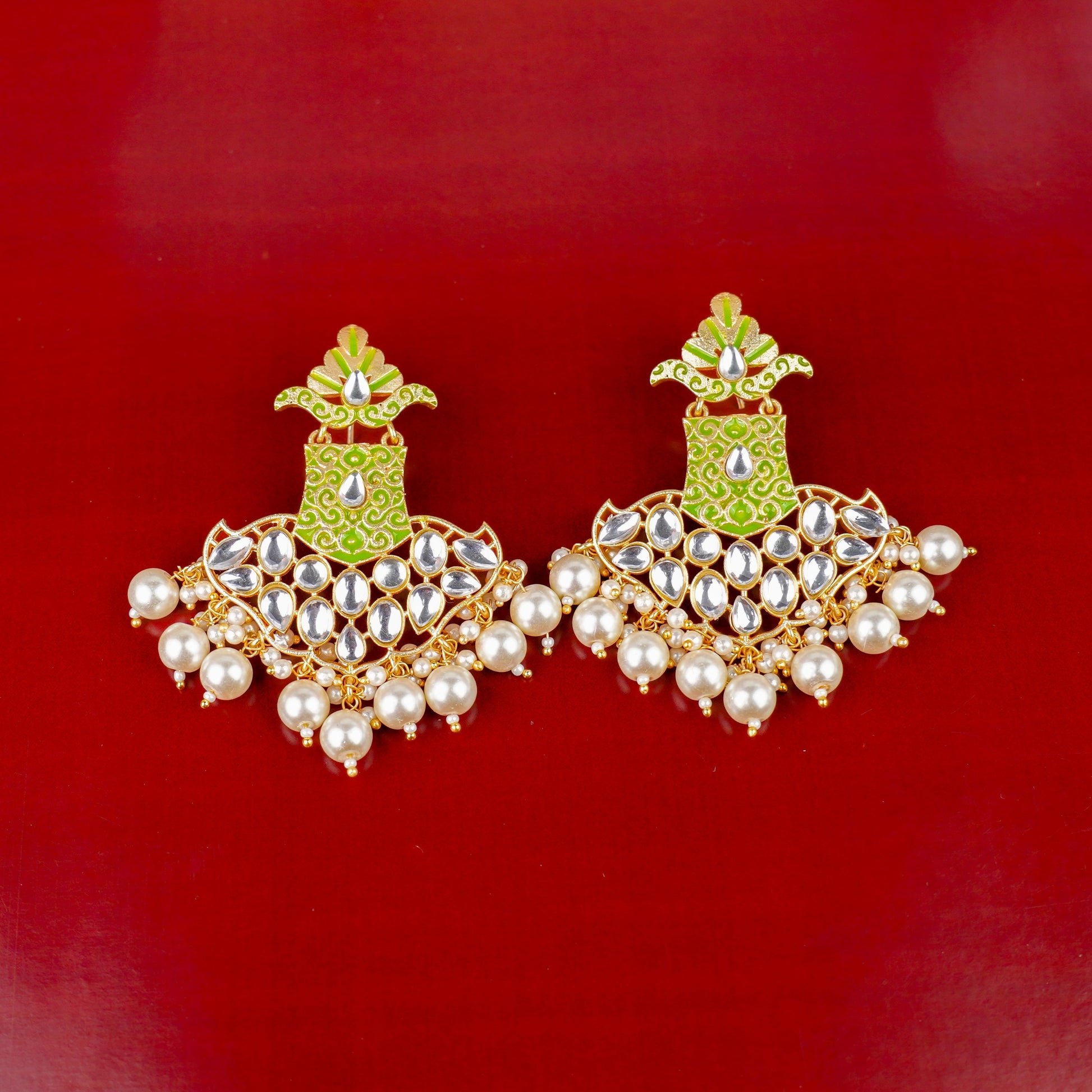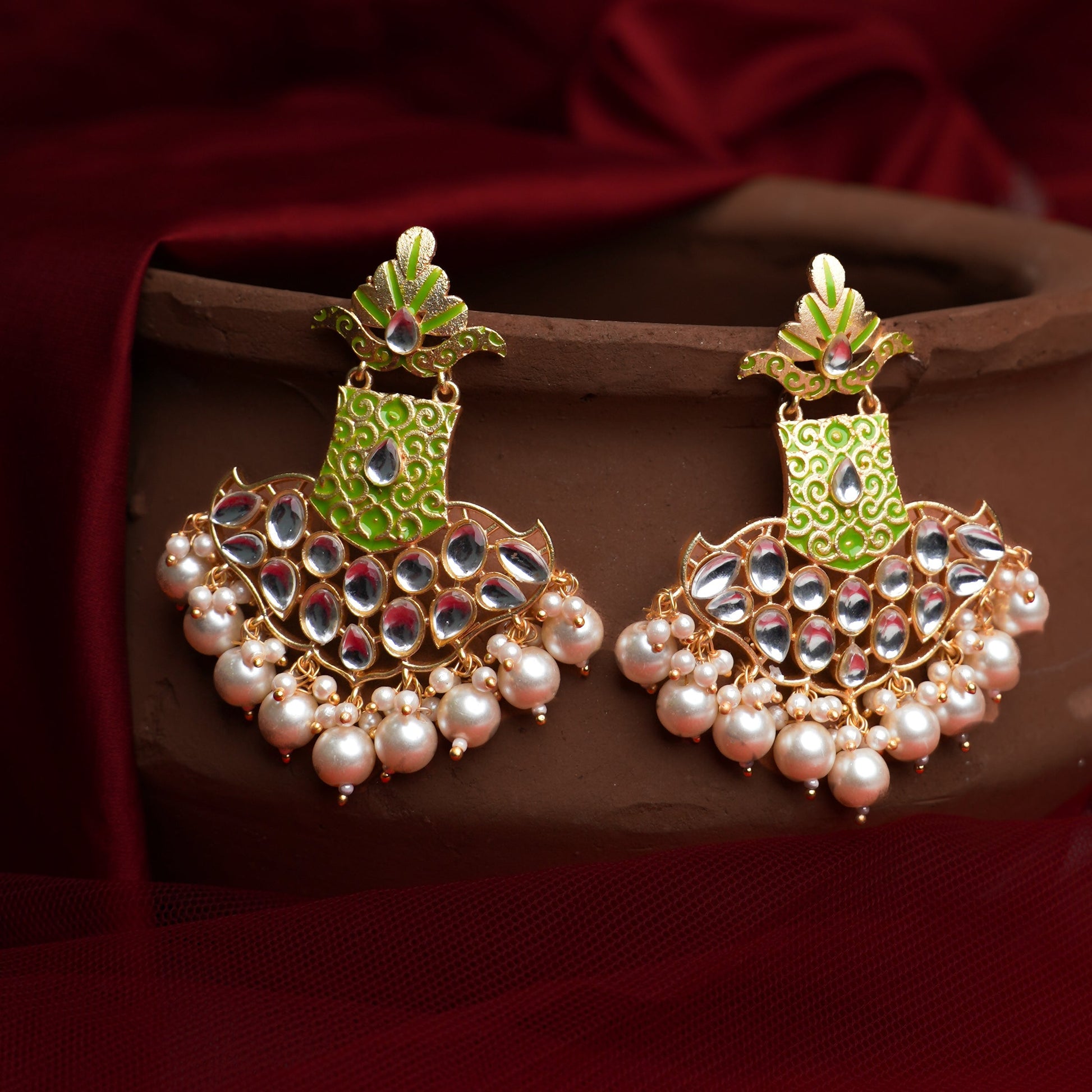 Tara- Stone Studded Hanginh Pearl Dangler earrings(Green)