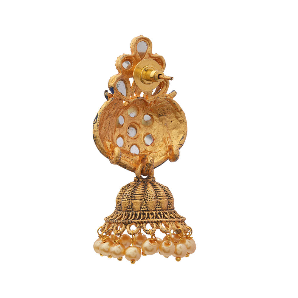 Divya- Stone Studded Hanging Pearl Jhumka Earrings (Blue)