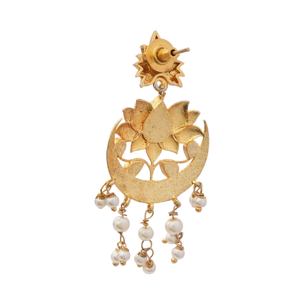 These Vanya Meenakari Hanging Baby Pearls Statement Danglers combine traditional craftsmanship with elegant design. Featuring delicate meenakari work and finely suspended baby pearls, they offer a refined yet striking accessory for special occasions. Expertly crafted to enhance your ensemble, these earrings bring a sophisticated touch with a hint of ethnic charm.