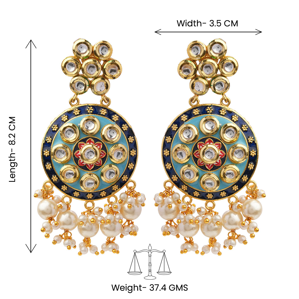 Embrace traditional artistry with the Aarya Meenakari Hanging Pearl Dangler Earrings. Featuring intricate Meenakari detailing and delicately suspended pearls, this pair adds graceful movement and radiant charm to any ensemble. Designed to elevate festive looks, cultural outfits, and celebration wear, they offer comfort and statement appeal in a single elegant piece.