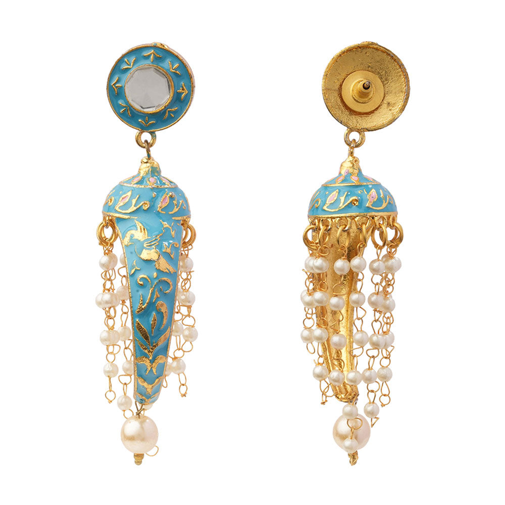 Add a graceful shimmer to your look with the Aashna Stone-Studded Dangler Earrings in Sky Blue. Designed with slender cascading accents and delicately set zircon stones, these earrings enhance every movement with soft sparkle. Their lightweight build makes them ideal for festive ensembles, elegant outings, or elevating everyday outfits with a touch of sophistication.