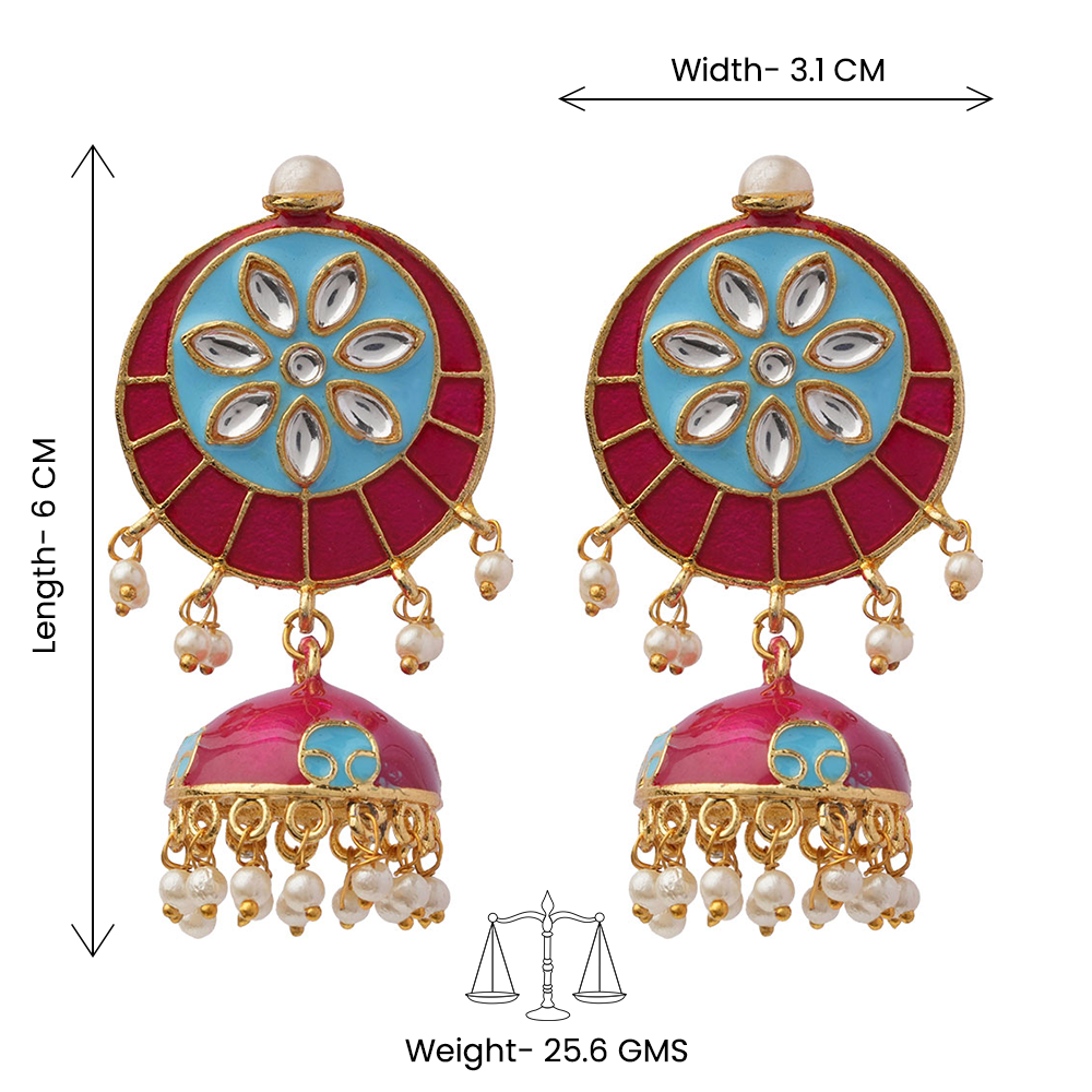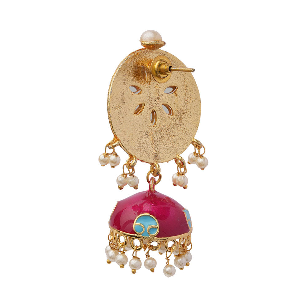 Add a touch of elegance to your collection with the Ahana Stone-Studded Hanging Pearl Jhumka Earrings in Pink. Crafted with delicately set stones and a graceful pearl drop, these jhumkas blend classic charm with modern femininity. Lightweight and versatile, they’re perfect for festive occasions, ethnic outfits, and everyday ensembles that call for a refined hint of sparkle.