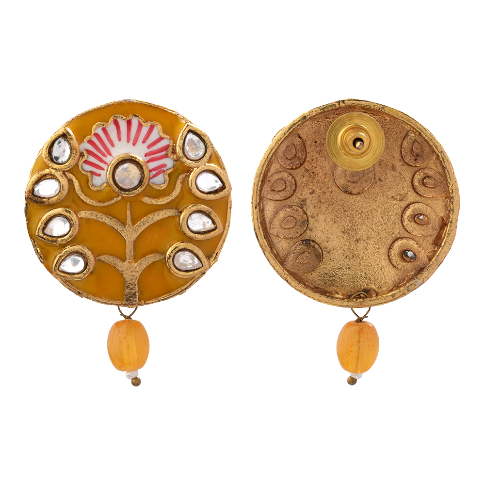 The Indira Stone Studded Hanging Pearl Beaded Neckpiece Set blends artisanal detail with festive charm. The necklace features radiant yellow beads paired with shimmering stones and pearl drops, creating a graceful flow that elevates any ethnic ensemble. Paired with matching earrings, this set offers a refined statement for celebrations, weddings, and elegant gatherings. Lightweight, balanced, and eye-catching—Indira brings effortless sophistication to every occasion.