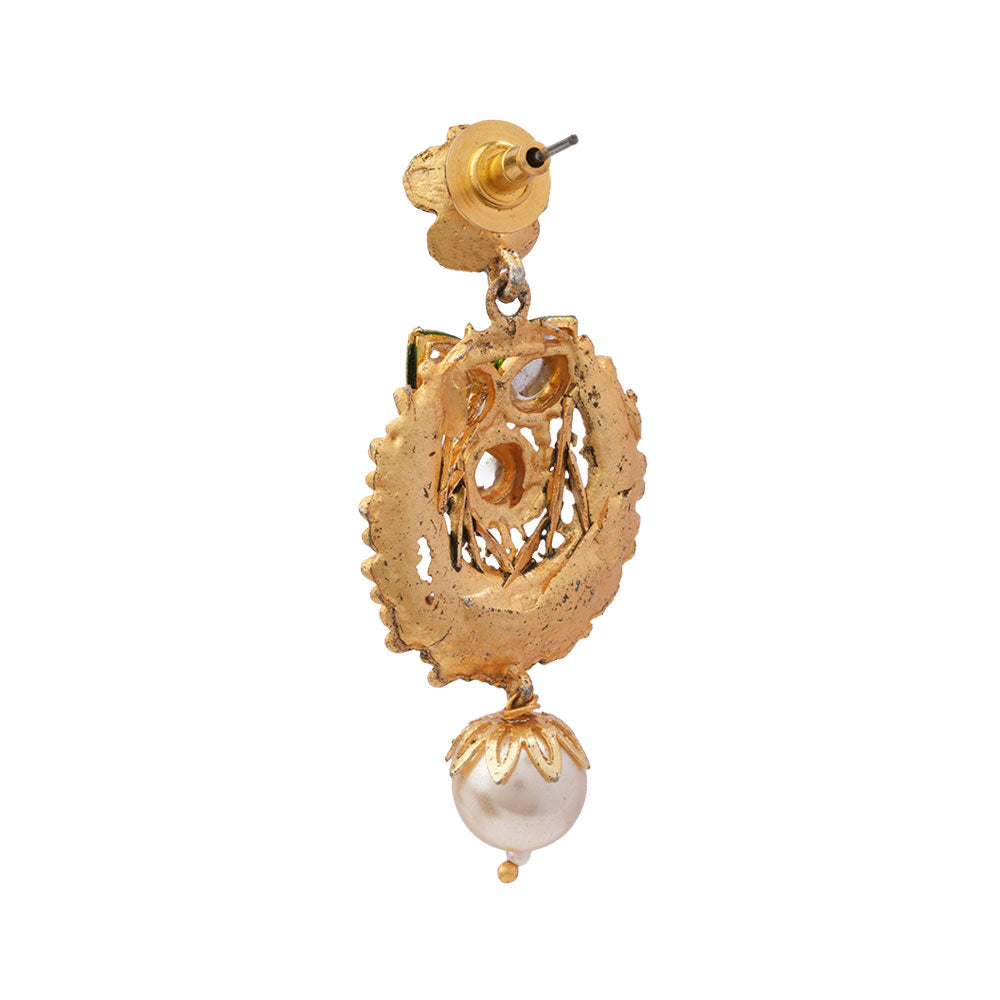 Tanirika- Stone Studded Hanging Pearl Dangler Earrings(White)