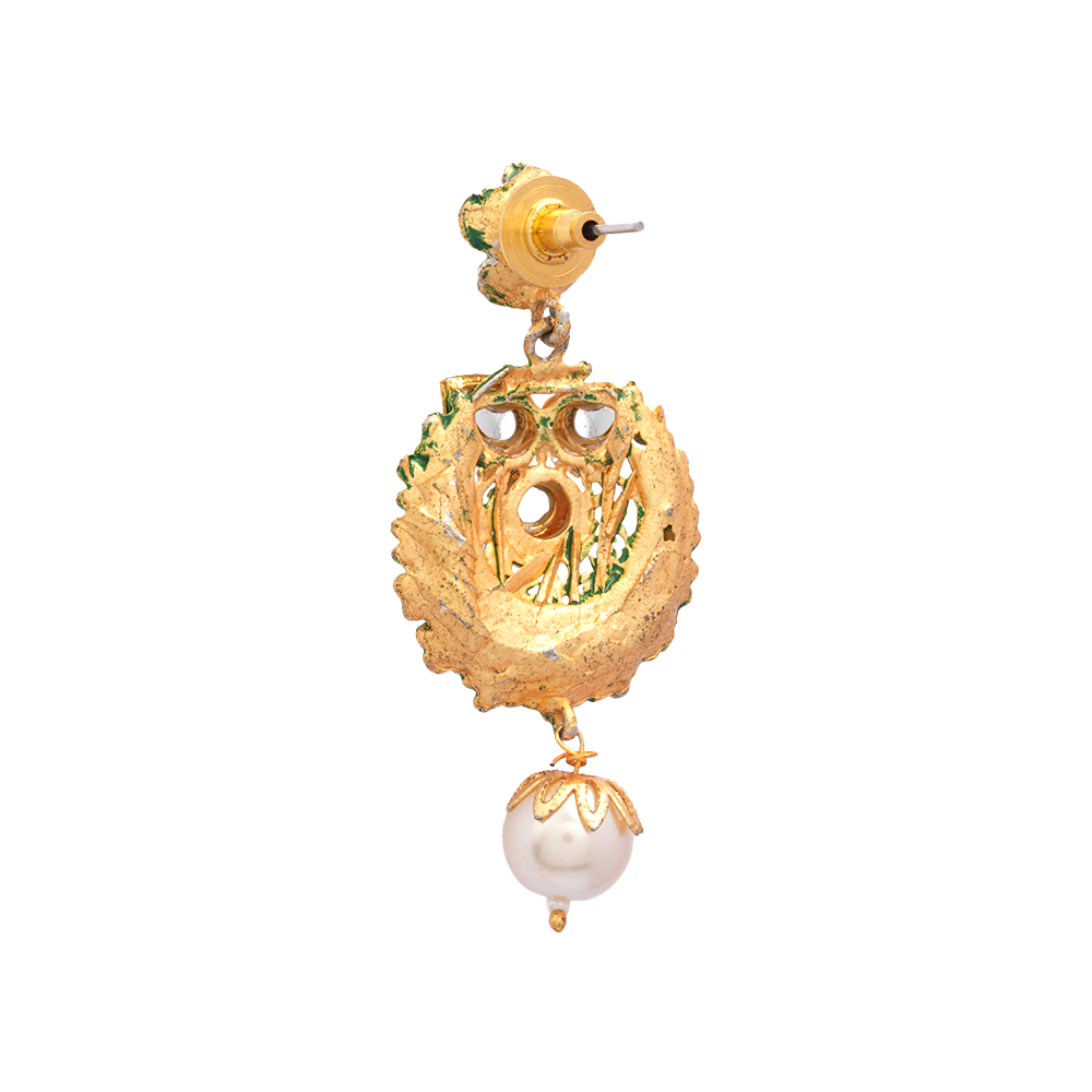 Tanirika- Stone Studded Hanging Pearl Dangler Earrings(Green)