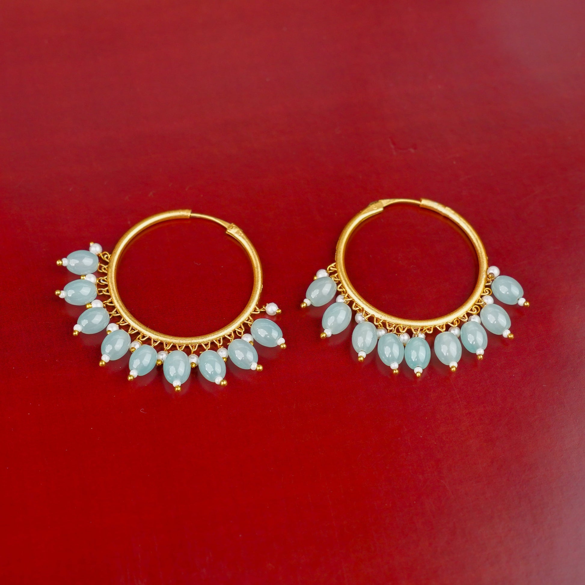 Meet Zoya — a playful blend of color and elegance. These matte-finished hoops feature delicate hanging pearls that add a soft, feminine charm. Lightweight and eye-catching, they bring movement and freshness to every outfit. Whether worn with festive wear, casual day looks, or fusion ensembles, Zoya is designed to stand out beautifully without overpowering your style.