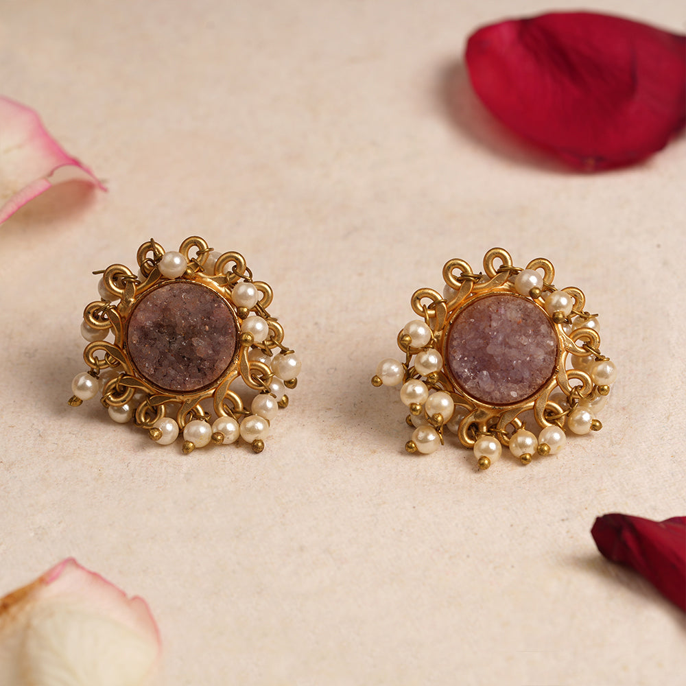 Nyra- Stone Studded Hanging Pearls Dangler Earrings