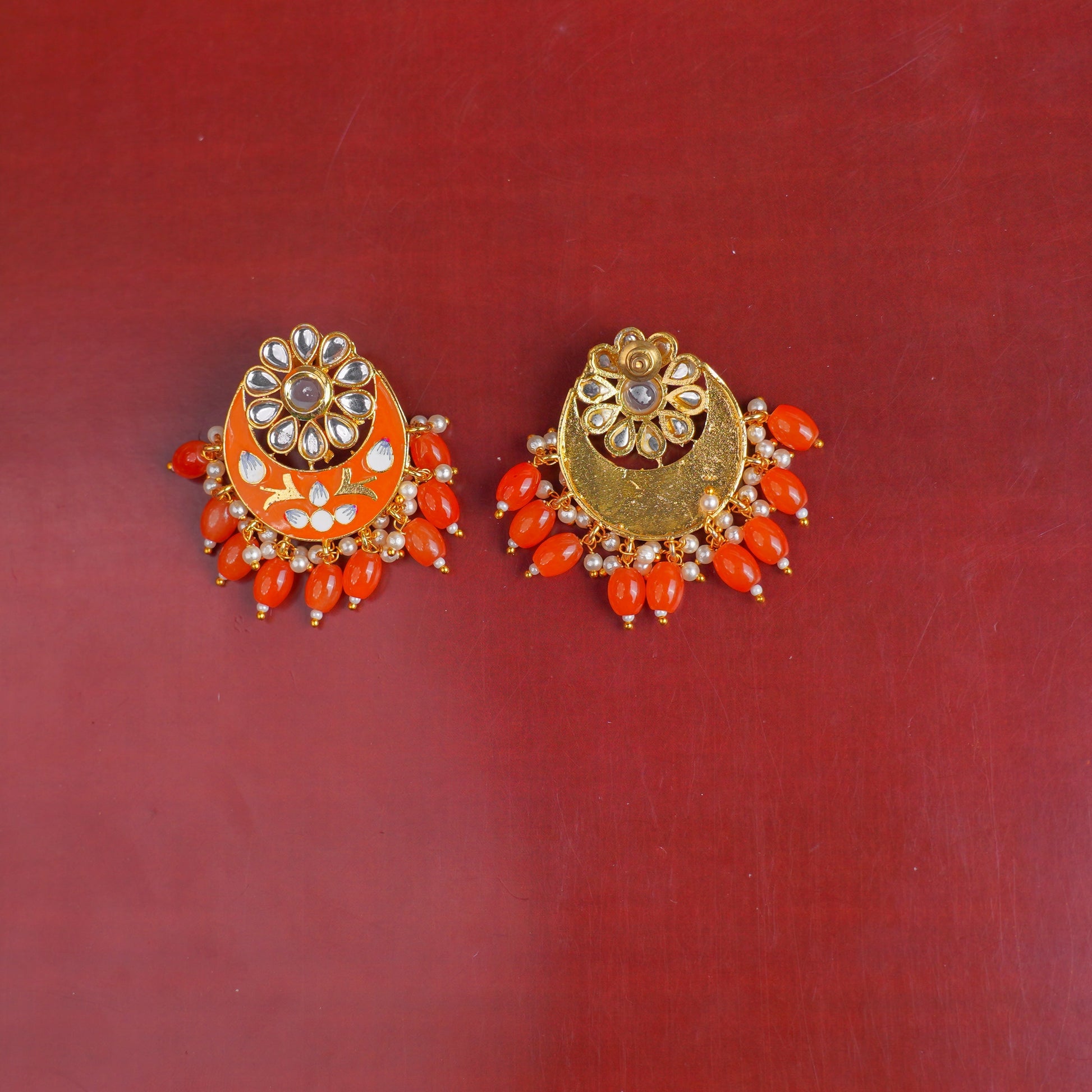 Aarvi- Stone Studded Dangler Earrings(Orange)