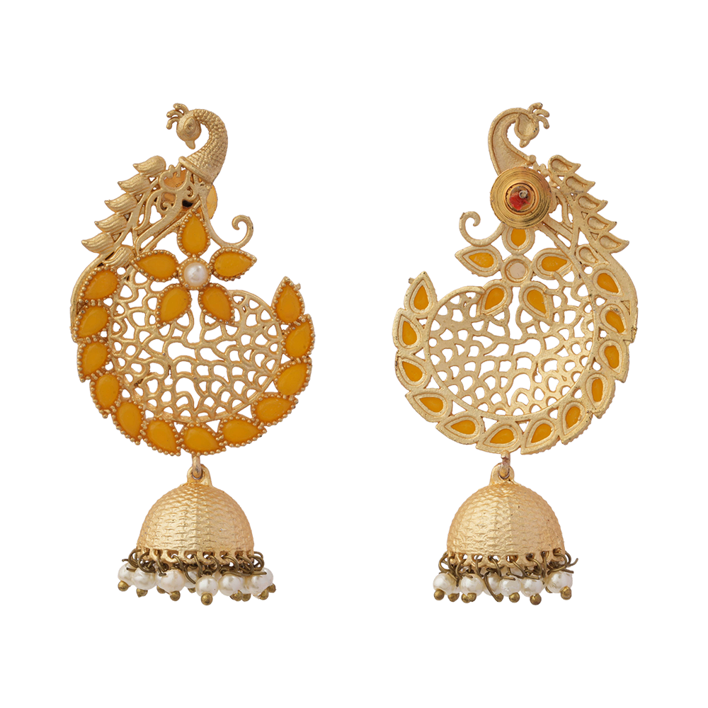 Prisha- Stone Studded Hanging Pearl Jhumki Earrings(Yellow)