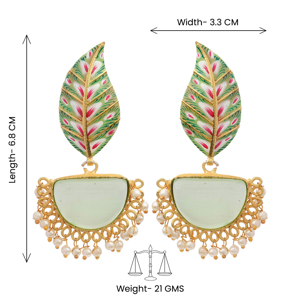 Aashi- Stone Studded Dangler Earrings(Pale Green)