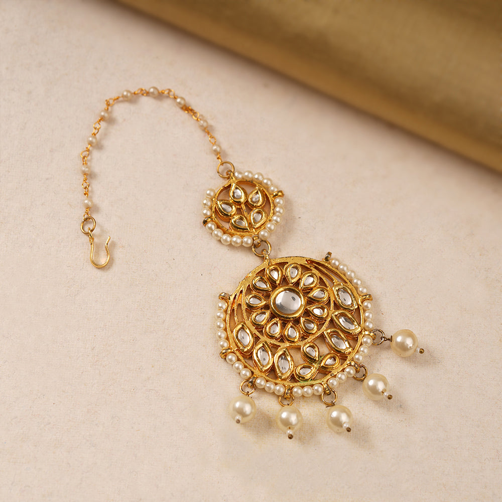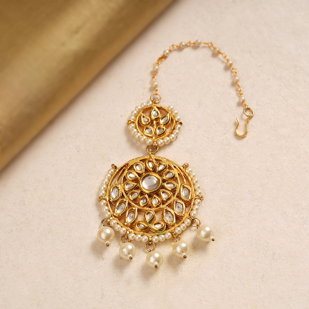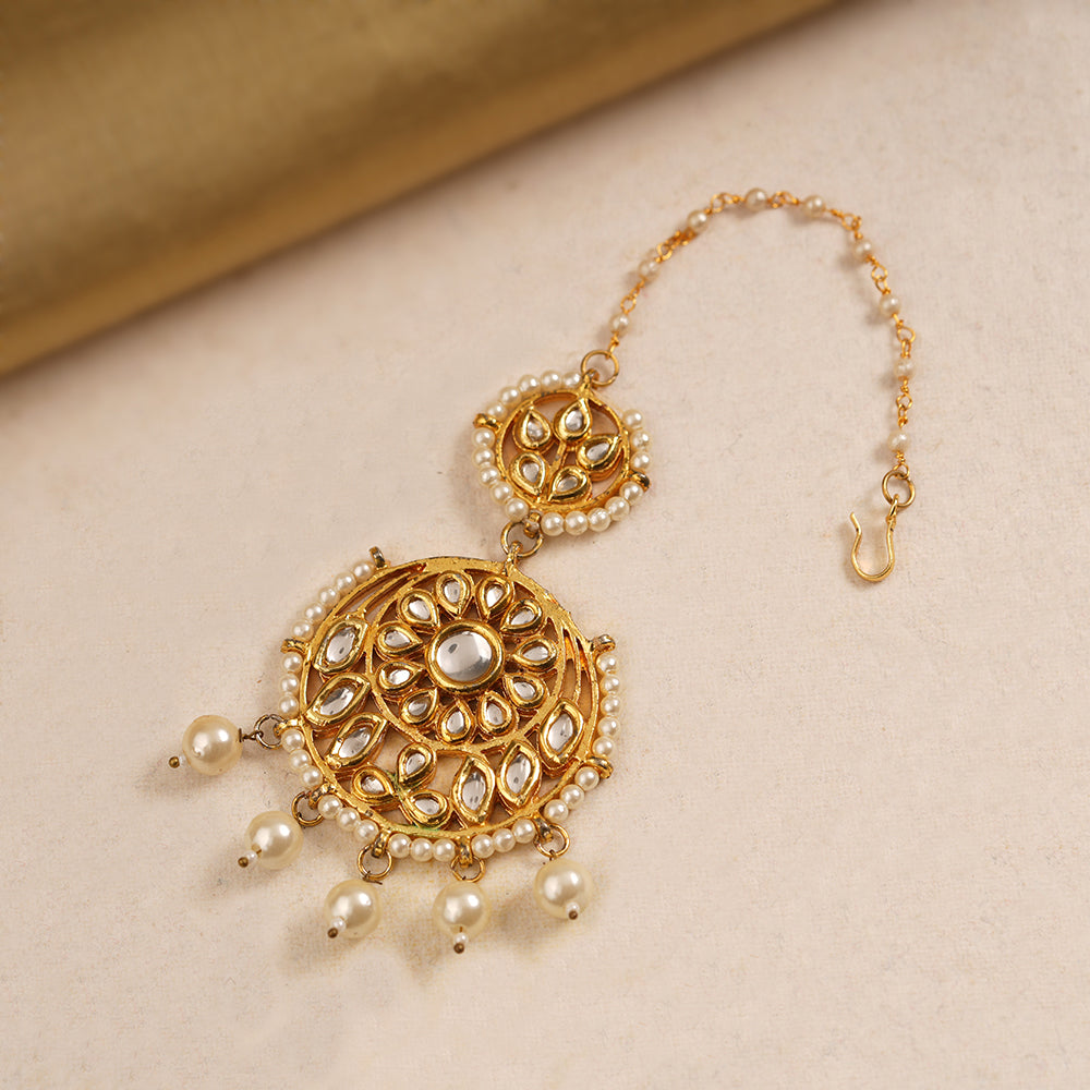 The Rajnandini Rajasthani Kundan Mangtikka showcases traditional craftsmanship with intricately set kundan stones, embodying regal elegance. Designed to complement Indian ethnic wear, it enhances your look with authentic Rajasthani artistry, offering a refined and timeless accessory for special occasions.