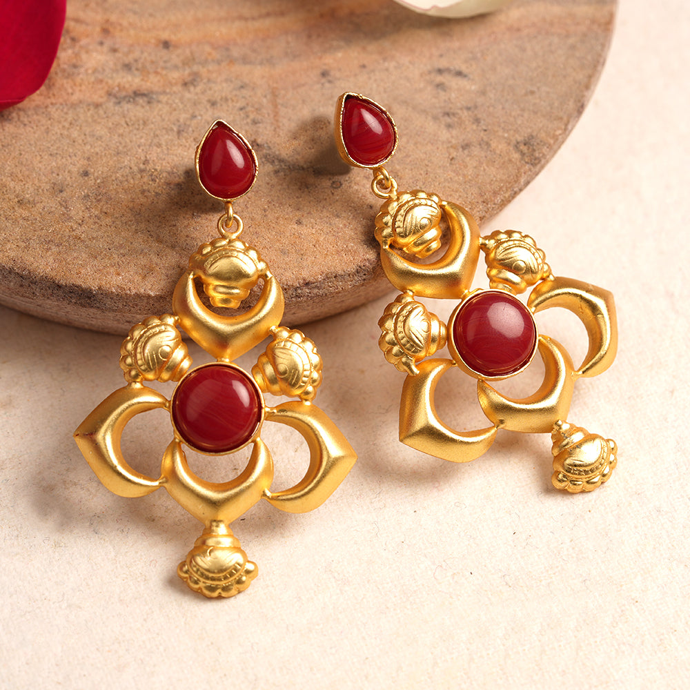 Nivah- Stone Studded Hanging Pearls Dangler Earrings